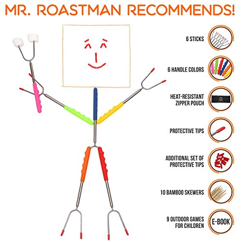 Premium Extra Long 45", Telescoping Marshmallow Roasting Sticks – Set of 6 Forks or Sticks – Ideal as Smores Sticks or for Roasting Sausages, Meat, Veggies – Bonus eBook with 9 Children's Games