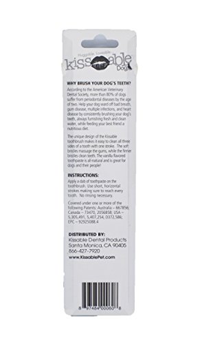 Three-sided toothbrush allows for you to brush all sides of your pet's teeth with one stroke. Works great with our Vanilla Flavored Kissable Toothpaste. Great for any size dog.