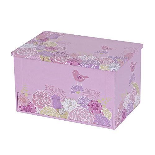 -. Feature : Decorated Paper in 'Bird & Blooms' design / Lift lid with oval interior mirror / Twirling ballerina / Plays "Waltz of the Flowers" / Main compartment offers ample open storage / One open area drawer / Decorative silver tone drawer pull / Hand lined in pink sueded fabric / 7 7/8" x 5" x 4 3/8" / Made in China