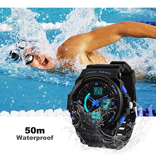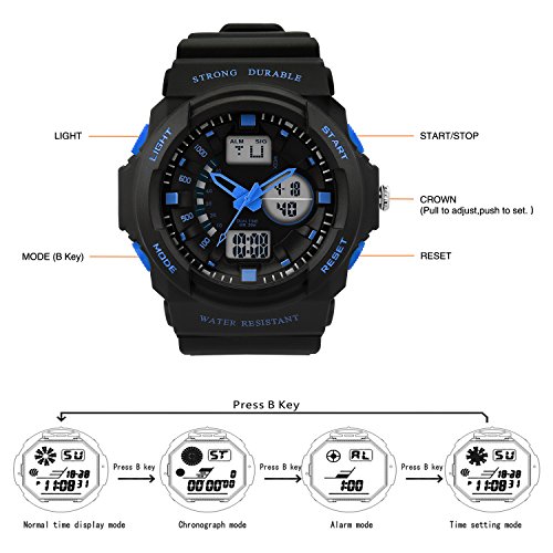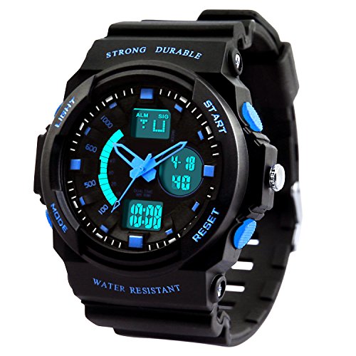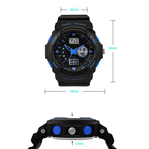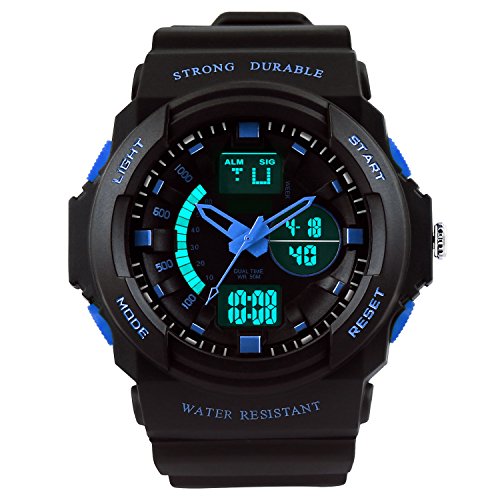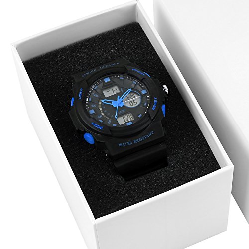 Dictac 손목시계 전자 시계 방수 다기능 스톱워치 자명종 아이 어른 레이디스 맨즈 겸용 (블루,어른)