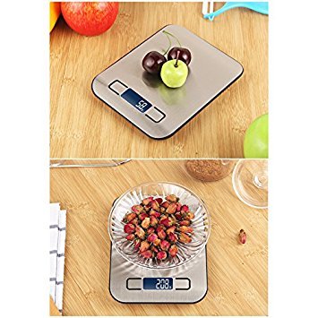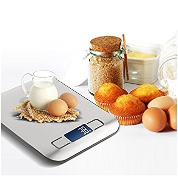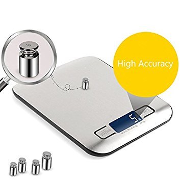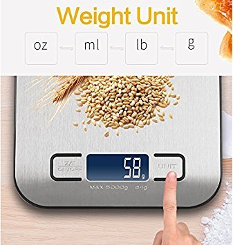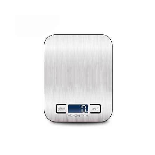 Huluwa Digital Scale Multifunction Food Kitchen Scale with Back-Lit Large LCD Display, 11lb/5kg, Automatically Switch off, Food Grade Stainless, Easy to Clean, Silver