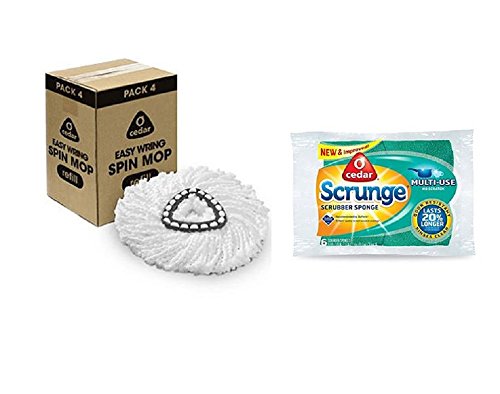O-Cedar (4 Pack) EasyWring Spin Mop Refill + (6 Pack) Multi-Use Scrunge Scrub Sponge