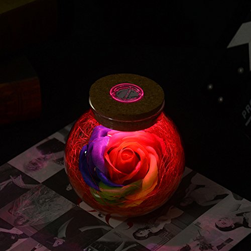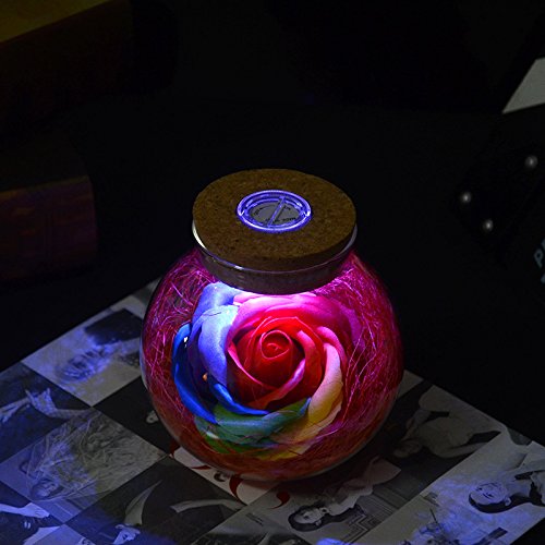 Gift Prod Rose Wish Bottle with Remote Control Handmade Preserved Rose Never Withered Roses Flower in Glass Dome, Gift for Valentine's Day Anniversary Birthday, with LED 7 Colors Light