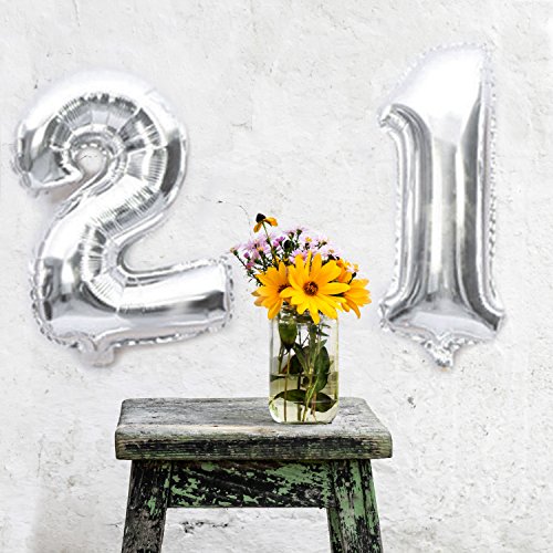 The number balloons can be inflated with air or helium. if this foil balloon is inflated with air, good quality of the balloon is normally not leak, but it will be deflated slowly. It is normal for good quality aluminum foil balloon, usually it can last for several months or even half an year. How to Use Aluminum Foil Balloons: Blow air into the balloons slowly, the available pump charge to 90%, then Straw gas blowing, easy to control, so as not to break. If there are 2 layers of aluminum foil sticky situation, must stop inflating, pull the 2-layer aluminum film slowly and then inflate,otherwise it will be easily damaged. Specification: Color: Silver Material: Aluminum film Size: 32 inches Package Includes: 1 x Balloon Warning: Adult needs supervision and keep un inflated balloons away from children. 0