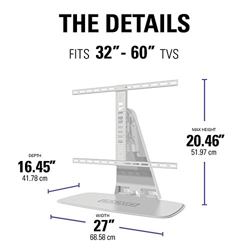 -. Binding : Accessory -. Brand : Sanus -. Color : White -. EAN : 0793795532008 -. Feature : Improves viewing angles (over traditional TV stand) by allowing up to 40 degrees of swivel. / Height adjustability (up to 8") to fit audio or component needs. / Offers greater stability to prevent TV tip-overs. / Features an easy and safe 20-minute, 3-step assembly that only requires a screwdriver. / Designed for seamless integration of a flat-panel TV and the Sonos® PLAYBASETM. Creates the appearance of a TV hovering over the PLAYBASETM, PLAYBARTM, or preferred sound solution . -. Label : Sanus -. Manufacturer : Sanus -. Model : WSTV1-W2 -. MPN : WSTV1-W2 -. PackageQuantity : 1 -. PartNumber : WSTV1-W2 -. ProductGroup : Speakers -. ProductTypeName : ACCESSORY_OR_PART_OR_SUPPLY -. Publisher : Sanus -. Studio : Sanus -. Title : Sanus Swivel TV Base Mount for 32”-60" TVs - Designed to be Sonos PLAYBASE Compatible & Features 40º of Swivel, 8” of Height Adjust, & Improved TV Stability - WSTV1-W2 (White) -. UPC : 793795532008
