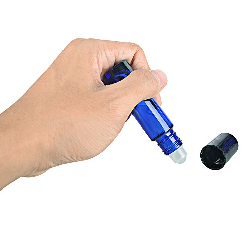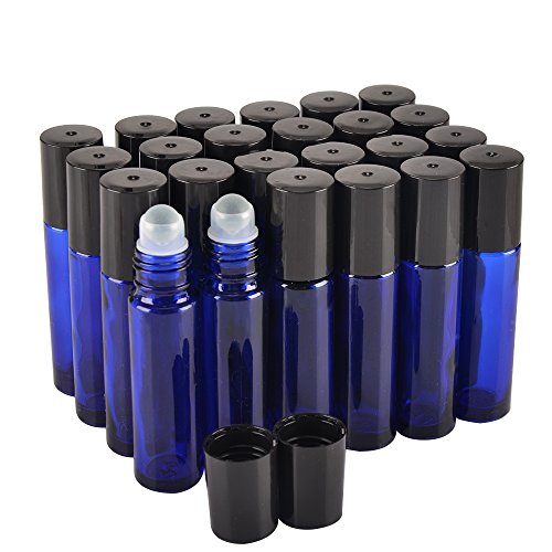 24 Pack,10 ml Blue Glass essential oil roller Bottle Bottles with Removable Glass Roller Ball.Designed for Essential Oil,Perfume Oils and Mosquito repellent liquid.