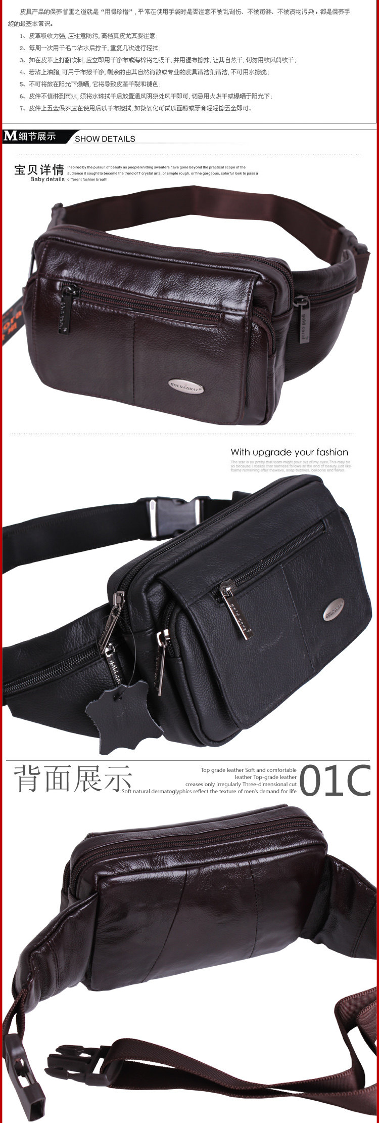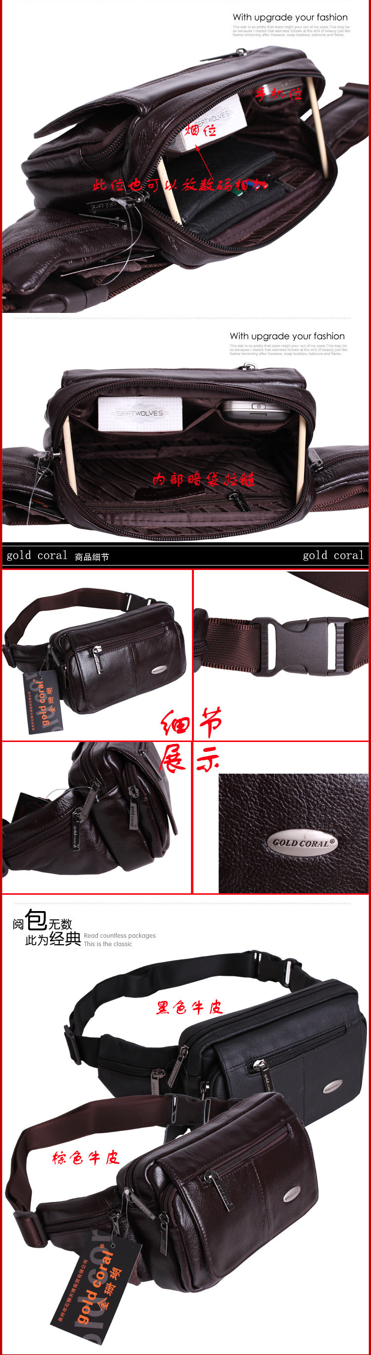 头层牛皮腰包男士腰包户外休闲韩版运动腰包潮真皮腰男包