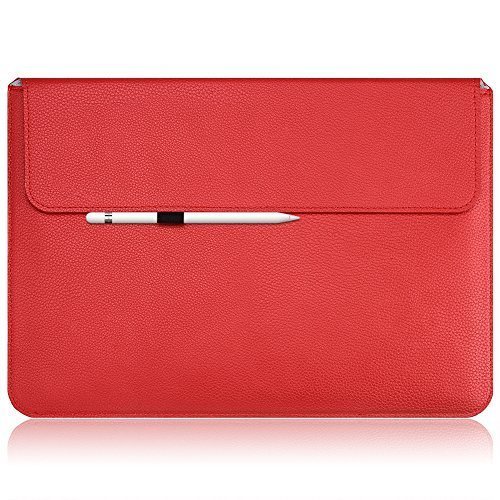 OMOTON PU Leather Wallet Sleeve with Built- in Interior Holder for Apple Pencil, Card Slot and Large Back Pocket for iPad Pro (12.9-Inch) - Red
