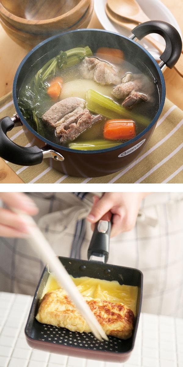 手際よくこなせる、種類豊富なツールセット♪少しの油でも、焦げつき・焼きむらしにくいダイヤモンドコート。お手入れも楽だから、時間に余裕が生まれます☆ |