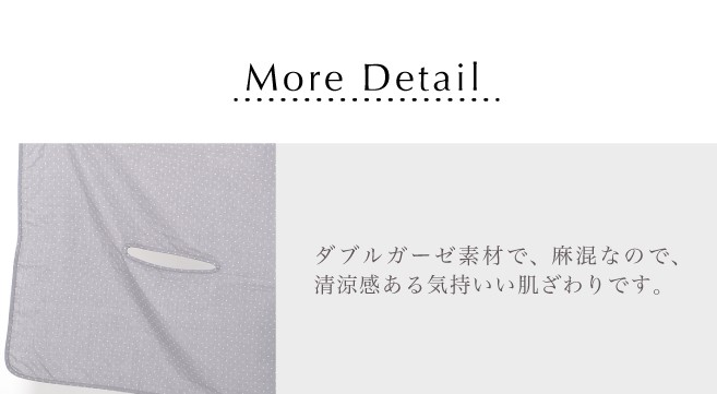 ダブルガーゼ素材で、麻混なので、清涼感ある気持いい肌ざわりです。