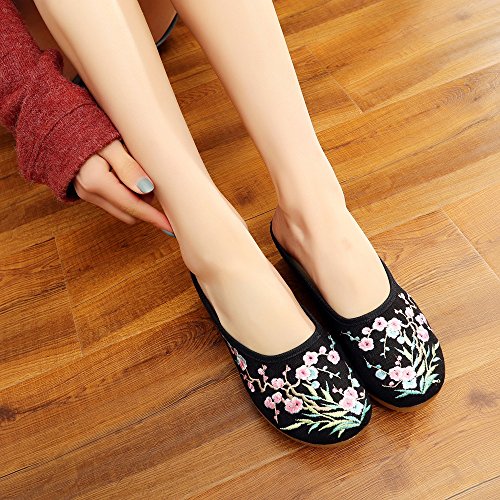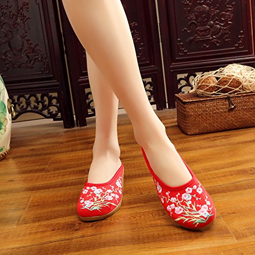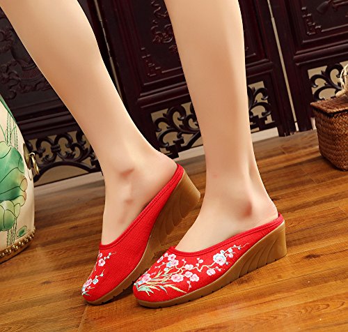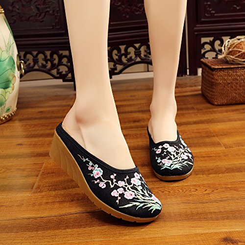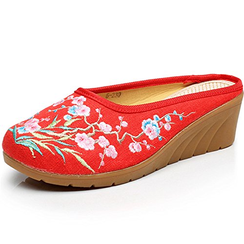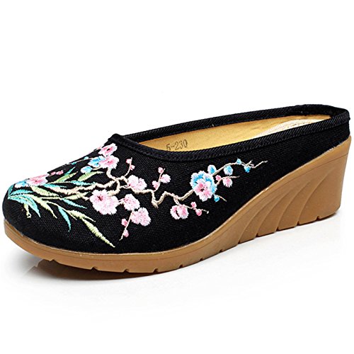 Qhome Women's Chinese Plum Flower Bamboo Embroidery Linen Comfortable Casual Mules House Wedge ...