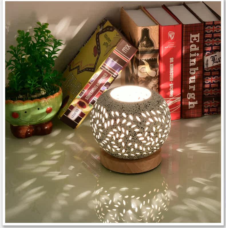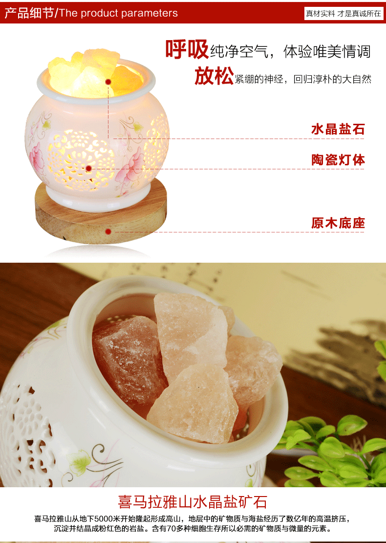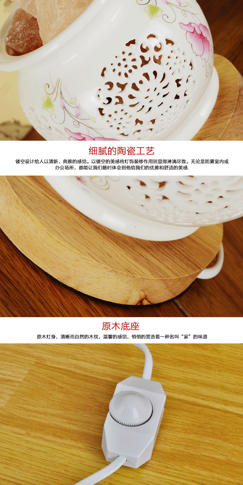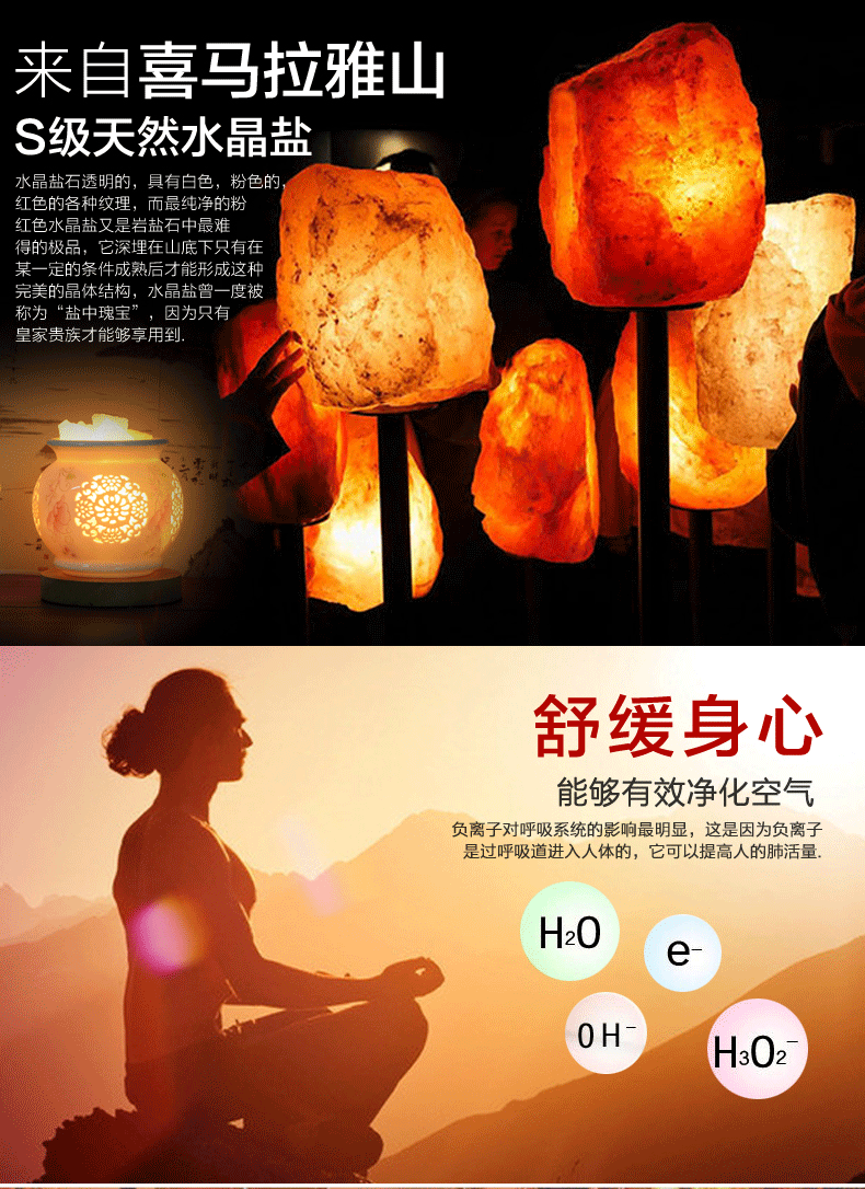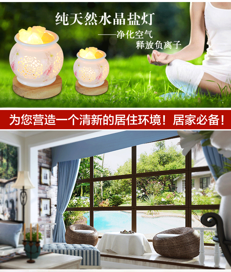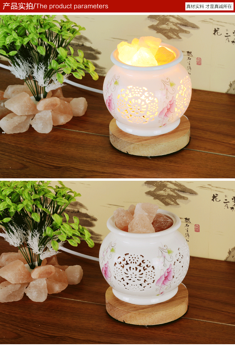 水晶盐灯喜马拉雅小夜灯韩式书房防辐射陶瓷台灯温馨 卧室床头灯