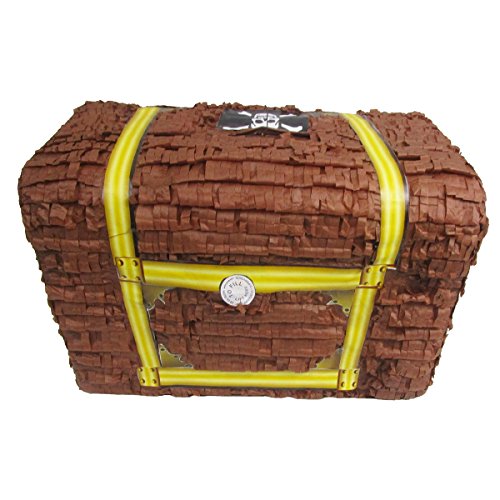 Studio : Pinatas Publisher : Pinatas Binding : Kitchen Product Description Now this is some treasure for a captain and his mates pinata measures 16" high x 11" long x 9.5" deep and holds approx. 2 lb. of toys and candy (sold separately), enough for 8-10 participants. Decorated with fringed-cut tissue paper and cutouts. Makes a great decoration, fun party game and exclusive photo prop. Perfect for birthdays on the pirates of the Caribbean theme. Pinata comes with strong cable tie at the top for hanging pinata and opening for adding fillers. 0