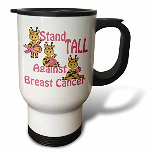 3dRose tm_116141_1 "Stand Tall Against Breast Cancer Cute Giraffes Awareness Ribbon Cause Design Stainless Steel" Travel Mug, 14 oz, Natural