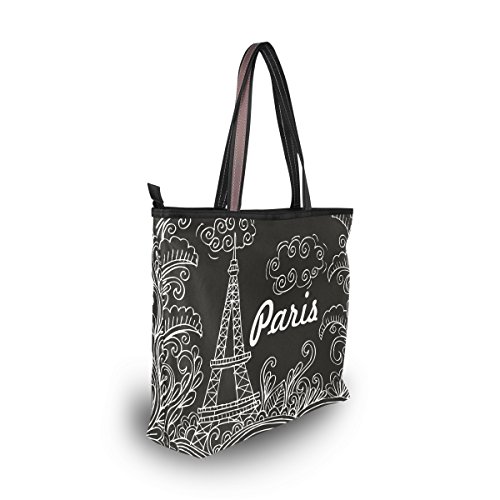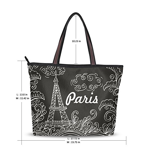 -. Title : JSTEL Women Large Tote Top Handle Shoulder Bags Eiffel Tower And Floral Patern Ladies Handbag