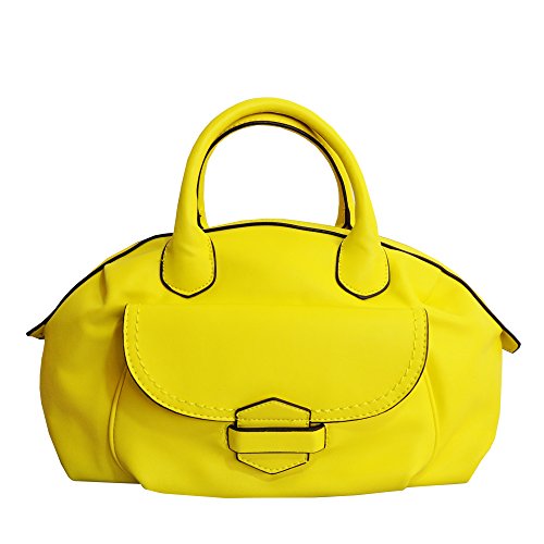 MoDA's Women's Chic Satchel bag will get you from the office to after hours with ease and confidence with its sophisticated look. Get yourself a high fashion look, with exceptional quality, at an unbelievable price. This fashionable bag has a unique, satchel shape and is large to hold all of your items. The front pocket has a magnet flap closure that looks stunning and is perfect to store any size cell phone for quick access. Zipper will open up to the interior of the bag is lined with a fashionable floral fabric. It has 2 pocket slits and one zippered pocket to organized your special items. The back of the bag, also features, a zippered separated compartment. This satchel looks lovely when held or take your handbag to the next level by attaching the adjustable strap for a more comfortable, unique style. Perfect for women of all ages. Available in 5 fashionable colors: Black, Cognac, Off White, Lemon and Coral that willl go perfectly with your every day outfits. Perfect gift for the special women in your life.Feature