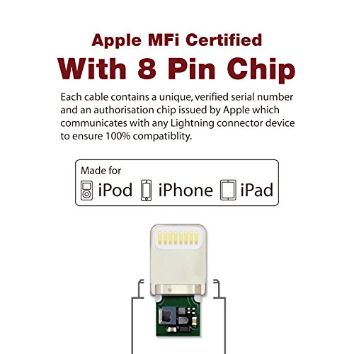APPLE CERTIFIED - Each cable comes with authorization chip issued by Apple to ensure 100% compatibility with all Lightning devices. NO MORE incompatible error messages.