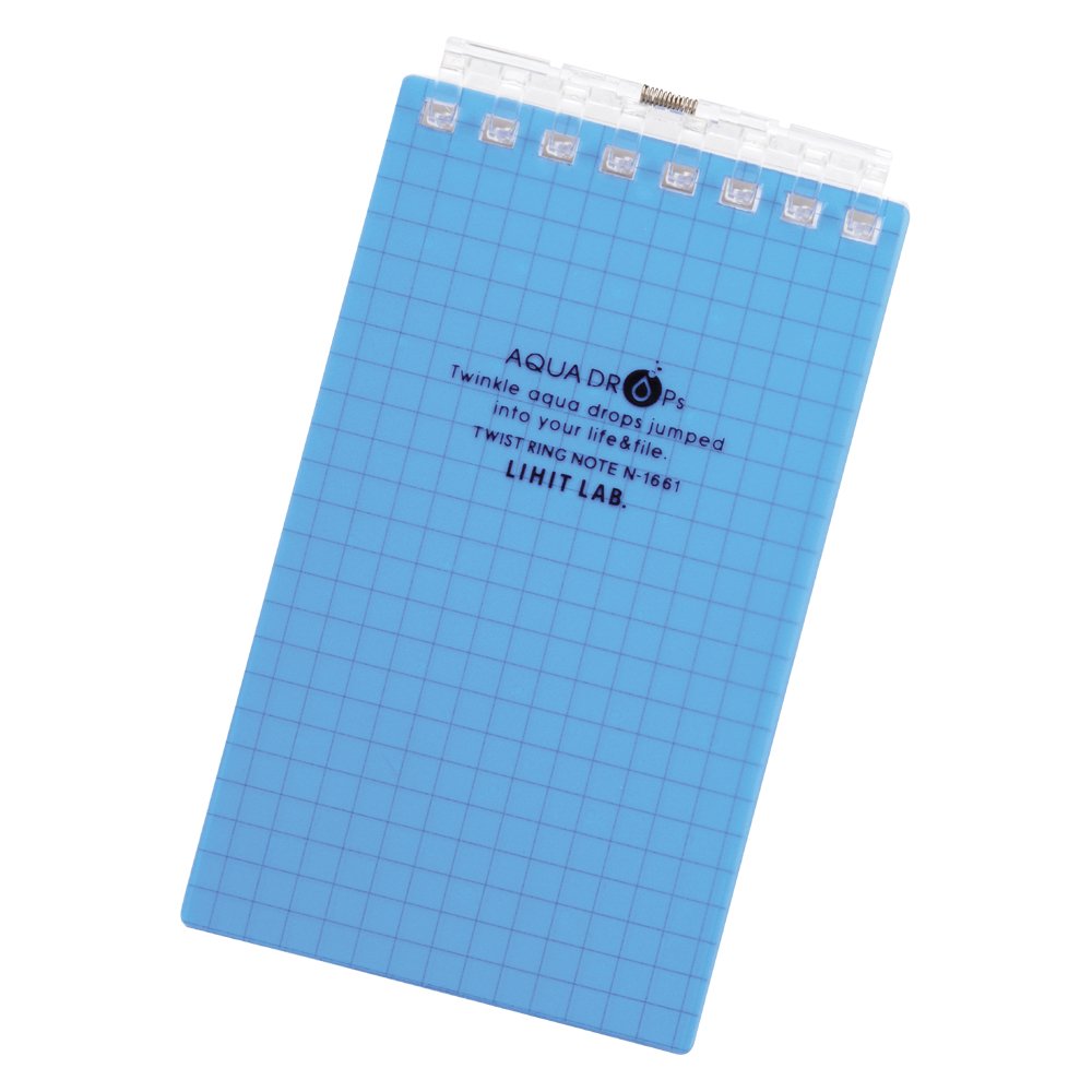 Lihit Lab Aqua Drops Twist Ring Memo Notepad - 2.8 X 4.7 - 5 mm Graph - 40 Sheets - Blue
