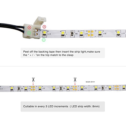 【Easy Installation】: Cuttable and connectable,with extension cables and connectors, you can easily DIY the length you want. Meanwhile, this light strip is ultra thin can fit perfectly on the narrow corners inside cabinets and around the wall.