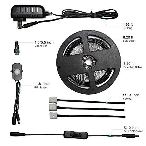 Sensky Motion Sensor LED Under Cabinet Lighting Kit Extendable Under Counter LED Light with Motion Sensor, Power Adapter for Closet, Shelf, Show Case, TV wall Lighting ( 8.2ft ,3000-3500k )