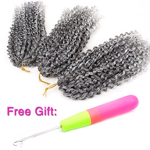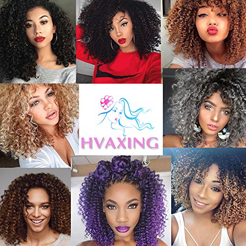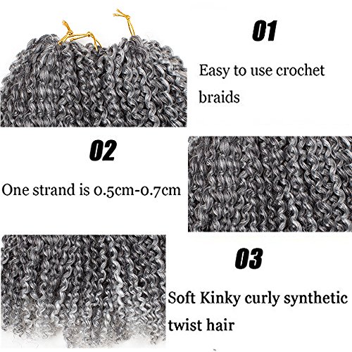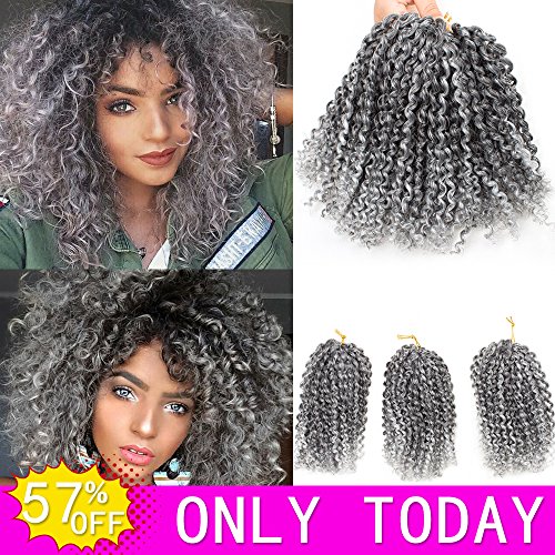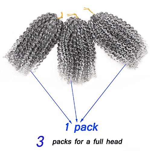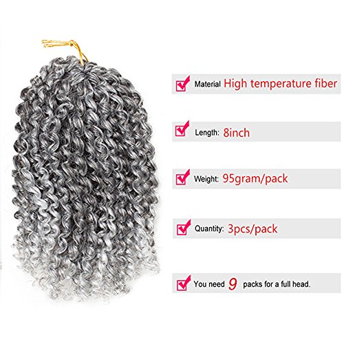 HVAXING 8 inch Short Marlybob Crochet Braiding Hair 3 Bundles/pack Afro Kinky Curly Synthetic Ombre Braids Hair Extensions (Natural Color-Grey)