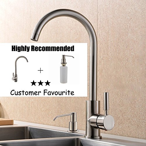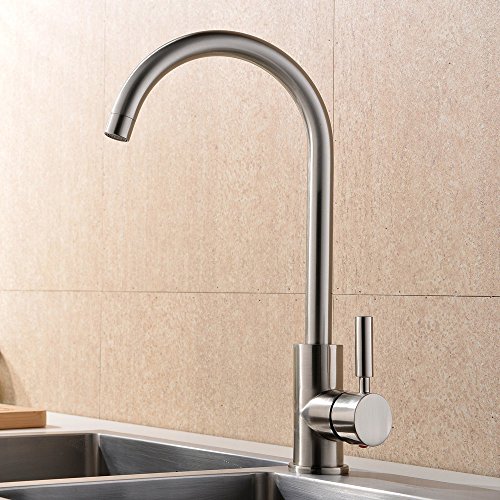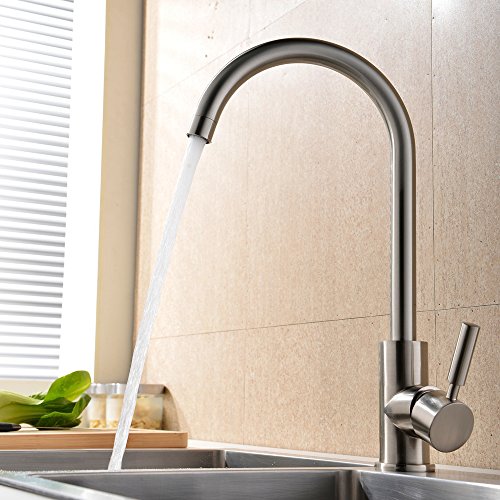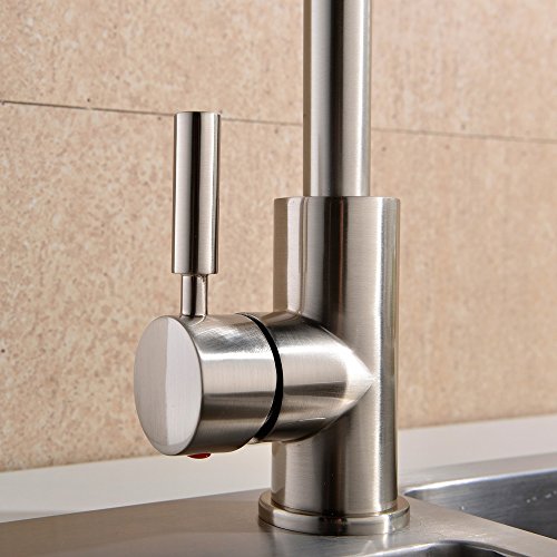VAPSINT 360 Degree Swivel Good Valued Modern Hot& Cold Mixer Stainless Steel Single Handle Brushed Steel Kitchen Sink Faucet, Easy Installation Brushed Nickel Kitchen Faucets