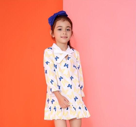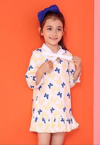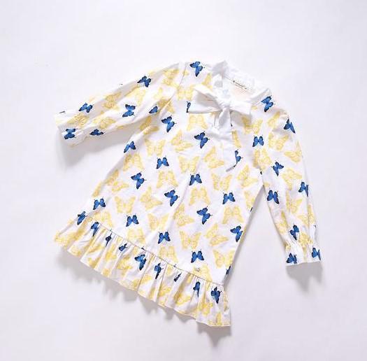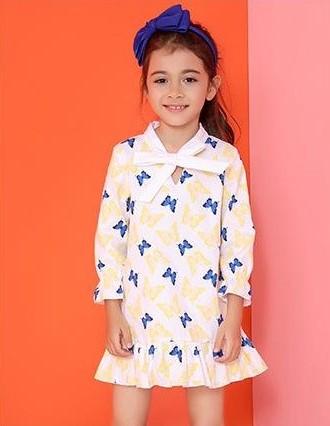 ・キーワード:プリント 蝶々柄 リボン 爽やか お出かけ キッズファッション キッズワンピース 2018年秋トレンド ワンピース