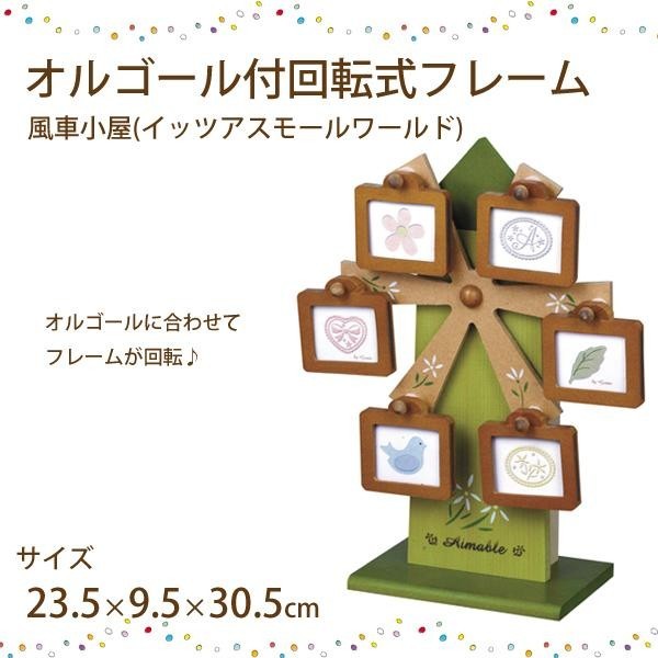 | 風車小屋をモチーフにしたフォトフレームです。6枚のフレームが回転します。出産のお祝いにぴったりです。 |