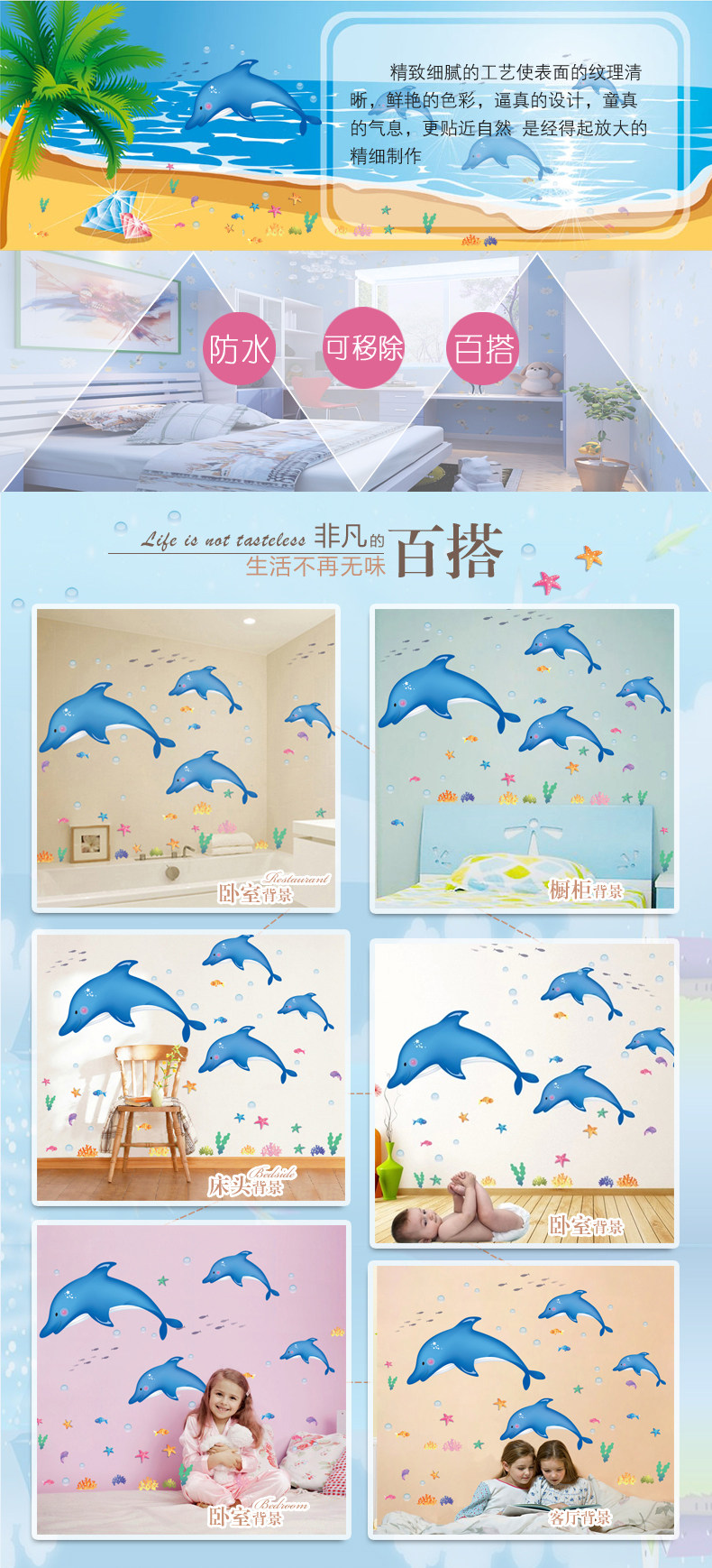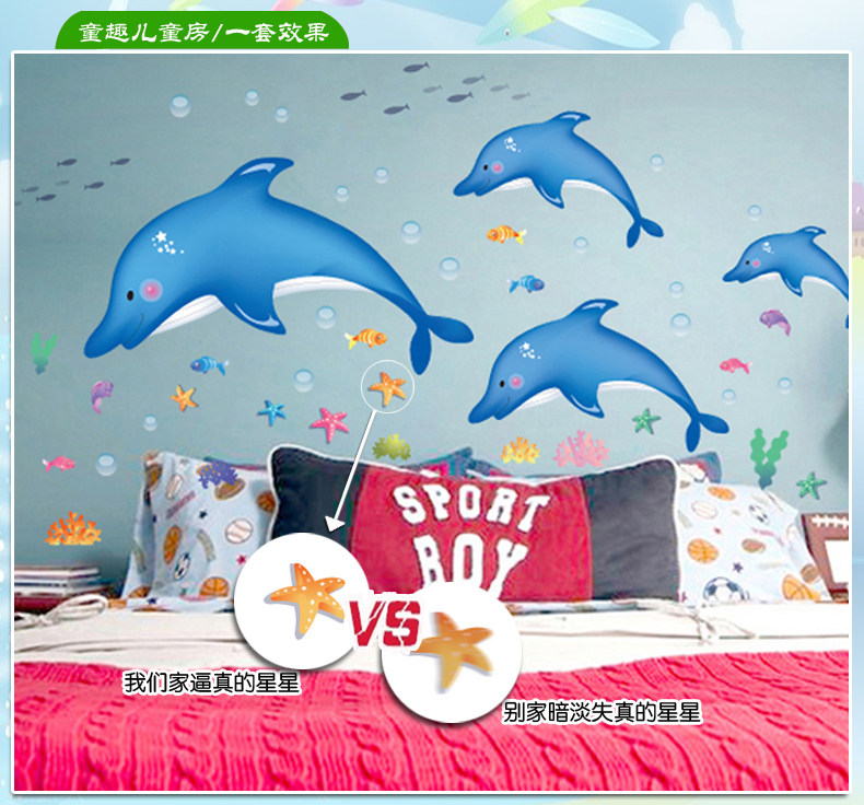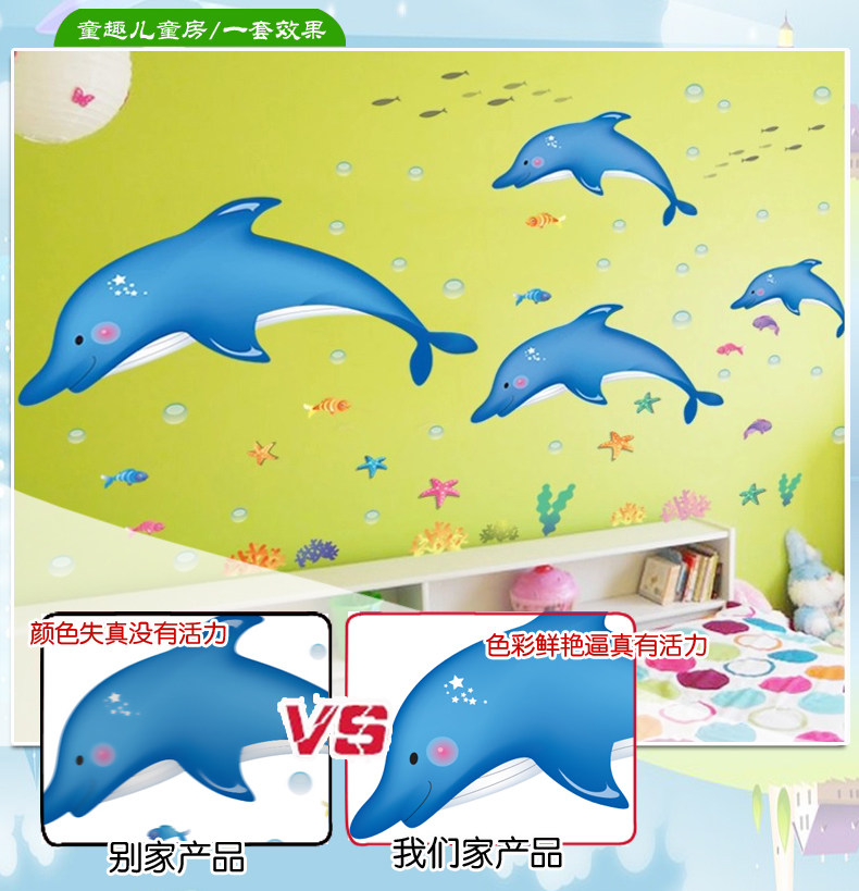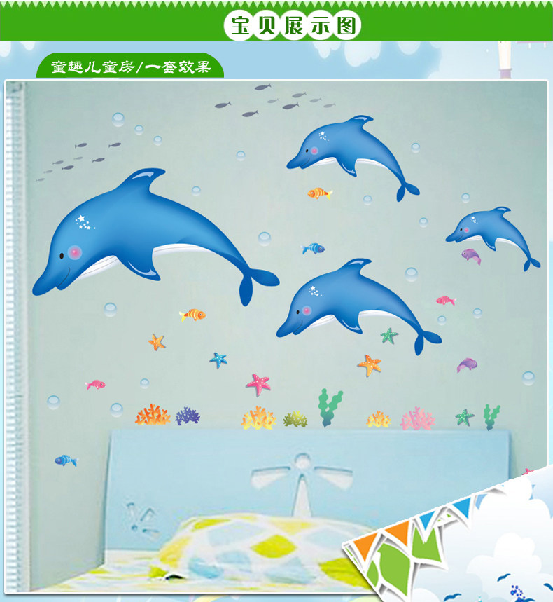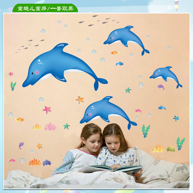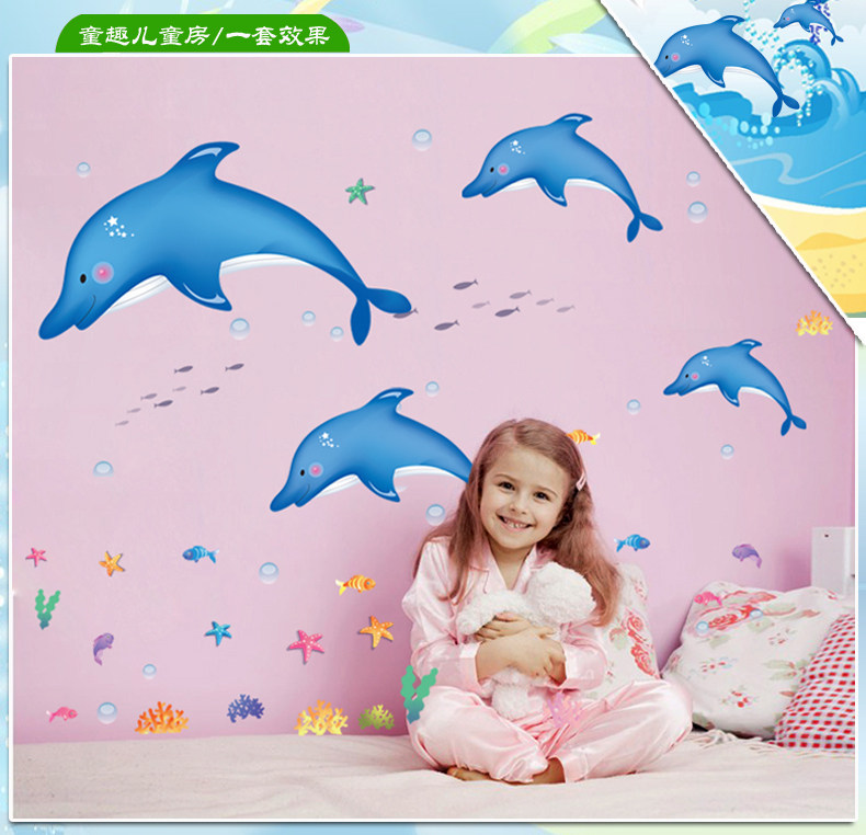 海豚墙贴画卡通儿童房墙贴纸 幼儿园墙纸贴画卧室墙面可移除壁贴