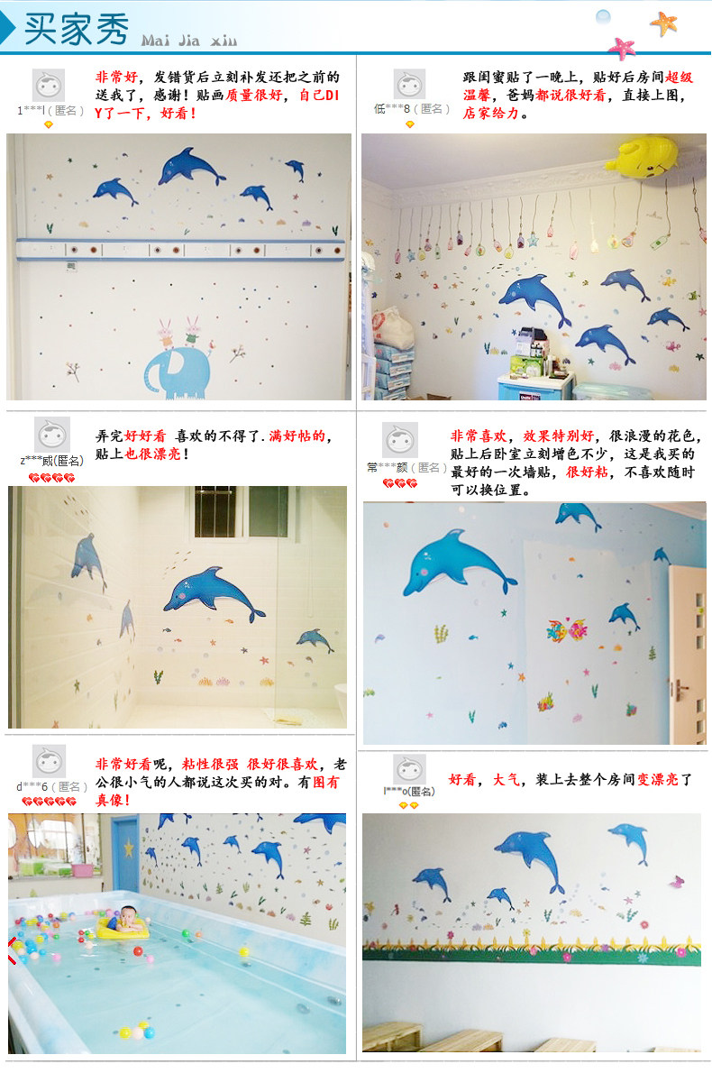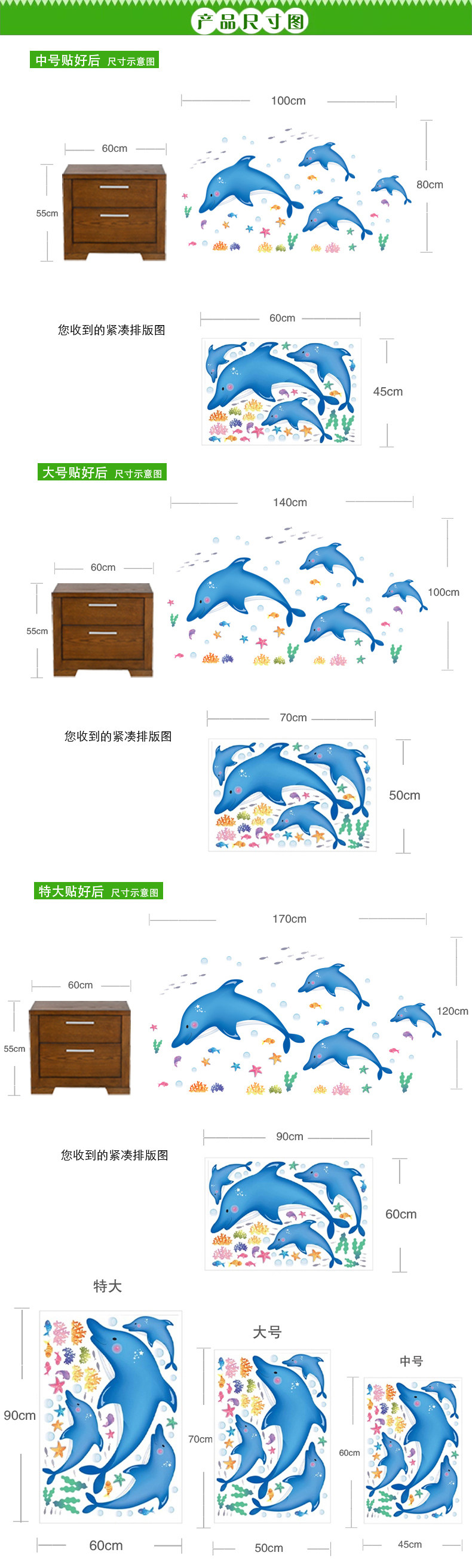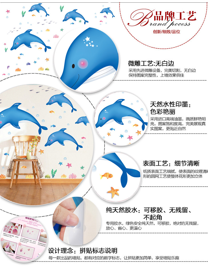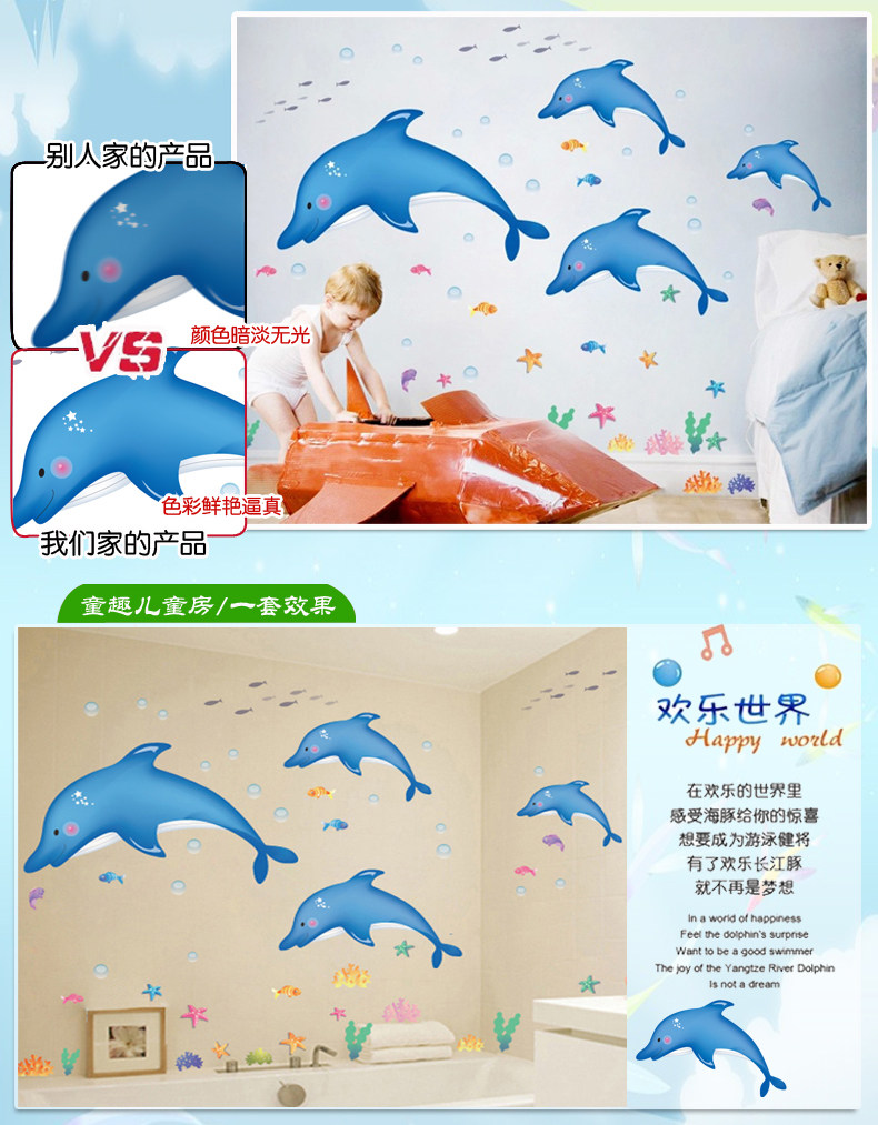 海豚墙贴画卡通儿童房墙贴纸 幼儿园墙纸贴画卧室墙面可移除壁贴