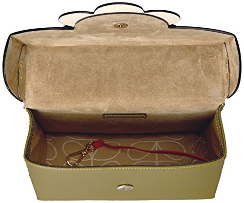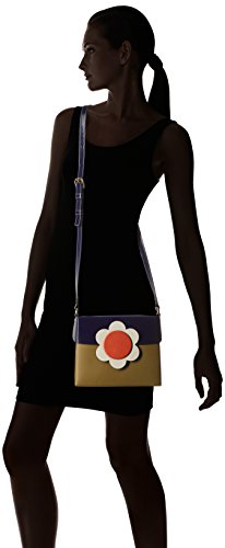 Studio : Orla Kiely Publisher : Orla Kiely Binding : Apparel Product Description Giant flower' leather fairfield bag. Contrast colored leathers with big applique flower front opening. Gold colored hardware. Adjustable strap may be worn on shoulder or cross body. Suede interior with sand linear stem lining and slip pocket and elastic key chain. 0