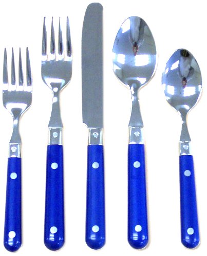 Amazon.com Review Imitation is the sincerest form of flattery, and this flatware has been flattered time and again over the past 30 years. This is the original, Le Prix, created for Ginkgo in the late 1970s in a small village in southern France. Now larger and sturdier, the flatware is constructed of 18/8 stainless steel with riveted, high-end plastic handles in a choice of half a dozen colors. Casual, fun, and worry-free, Le Prix sets are perfect for tucking in the picnic basket or camping kit, and pulling out for large gatherings such as family reunions when you want something in-between disposable plastic cutlery and the best silver. The four place settings in this 20-piece starter each consist of an 8-1/2-inch dinner knife, 7-3/4-inch dinner fork, 6-3/4-inch salad fork, 7-3/4-inch soup spoon, and 6-1/2-inch teaspoon. A handy, all-purpose design, the knife blades are not only rounded, to easily spread butter or mayonnaise, but slightly serrated, so you can cut barbecued chicken right off the grill. The handles are break-resistant, and even the white plastic is stain-resistant. Best of all, the flatware is dishwasher-safe. --Ann Bieri What's in the Box 4 place settings. Each place setting consists of: 8-1/2-inch dinner knife; 7-3/4-inch dinner fork; 6-3/4-inch salad fork; 7-3/4-inch soup spoon; 6-1/2-inch teaspoon. 20 pieces total. 0