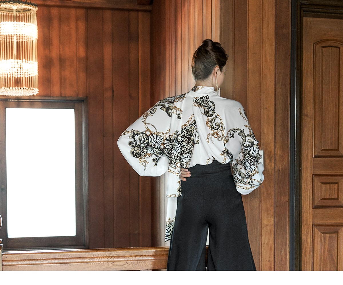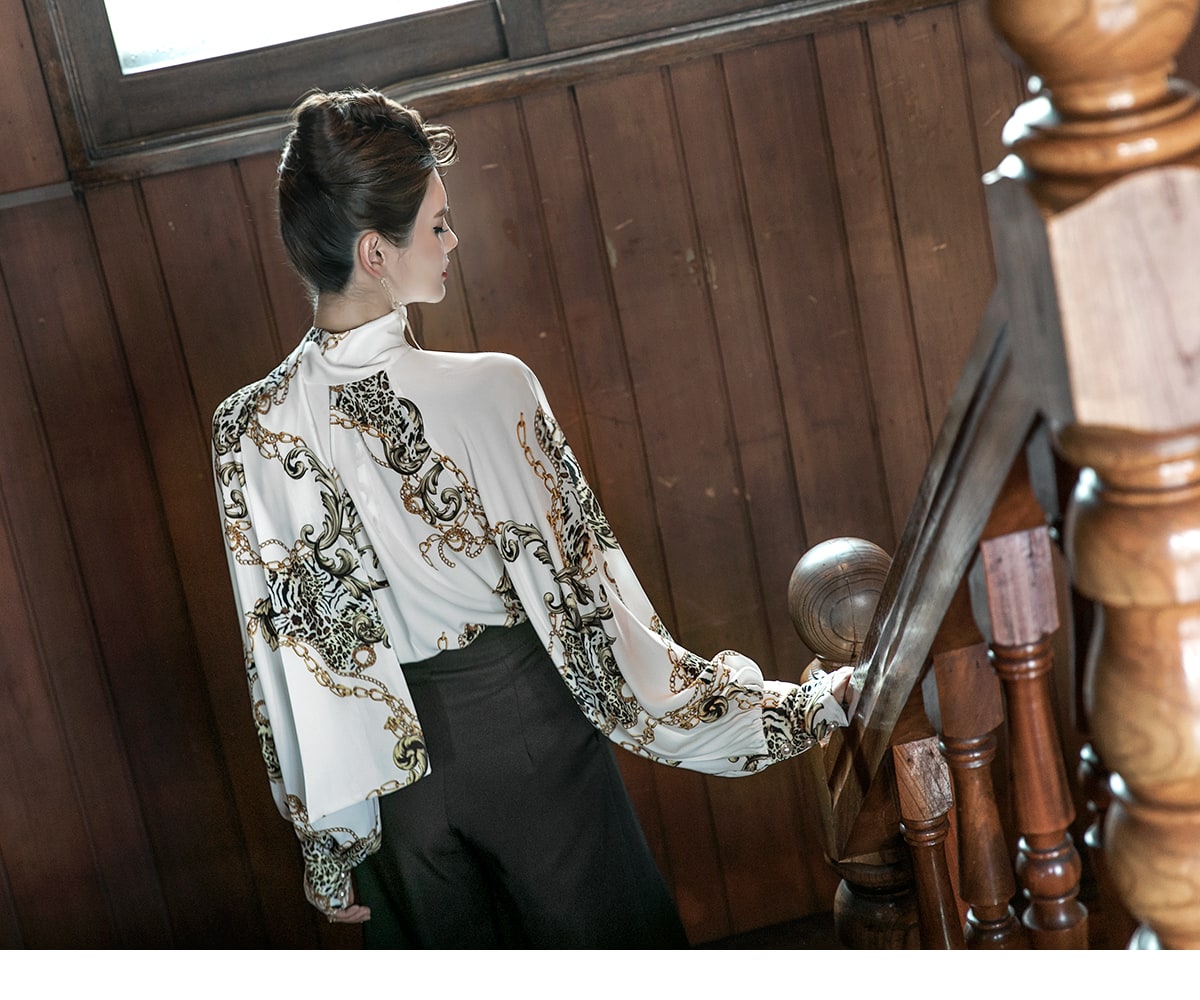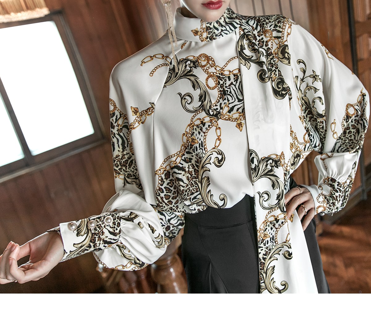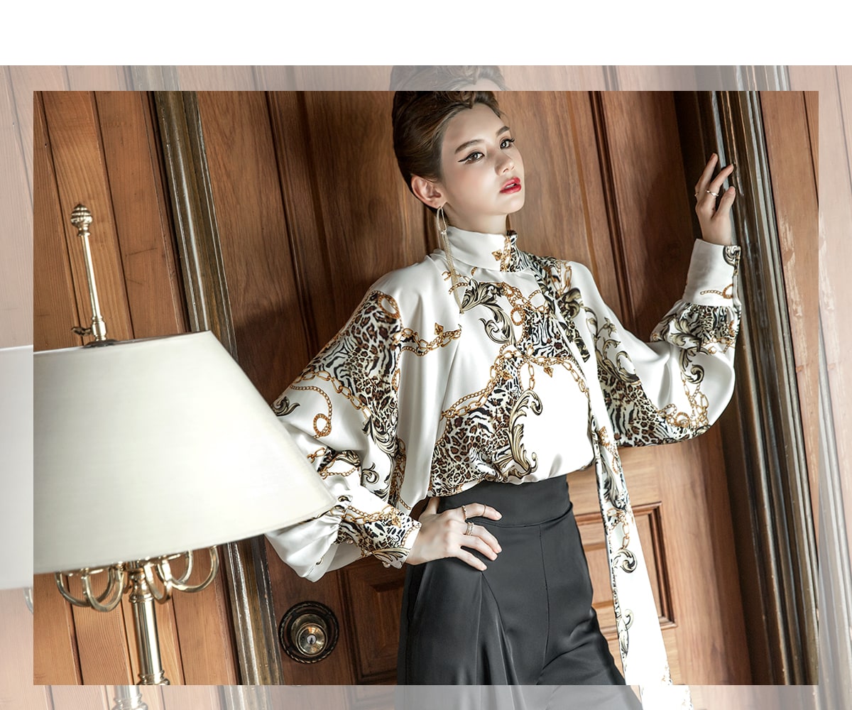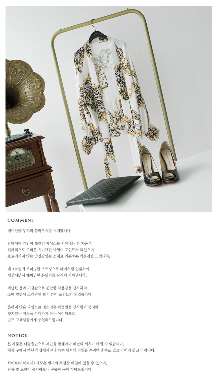 B9010 애니멀 체인 나염 타이 블라우스 Ivory mix