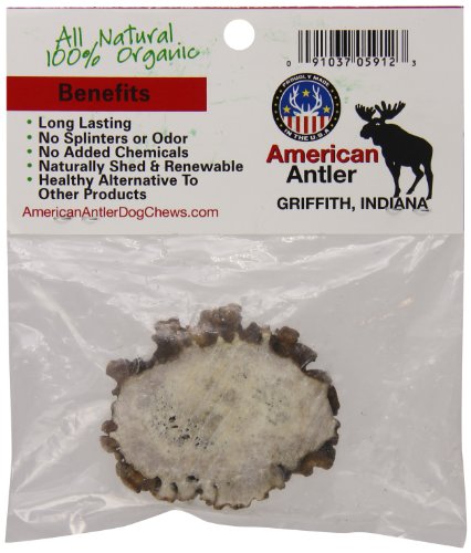-. Binding : Misc. -. Brand : American Antler Dog Chews -. EAN : 0091037059123 -. Feature : All-Natural; Long Lasting / Renewable sourced product / Promotes dental health / American Antler Dog Chews; Antler Button -. Label : American Antler Dog Chews -. LegalDisclaimer : Please monitor your pet while this product is enjoyed -. Manufacturer : American Antler Dog Chews -. Model : 091037059123 -. MPN : 091037059123 -. PackageQuantity : 1 -. PartNumber : 091037059123 -. ProductGroup : Pet Products -. ProductTypeName : PET_SUPPLIES -. Publisher : American Antler Dog Chews -. Size : 3" diameter approximately -. Studio : American Antler Dog Chews -. Title : American Antler Dog Chews, Antler Button -. UPC : 091037059123