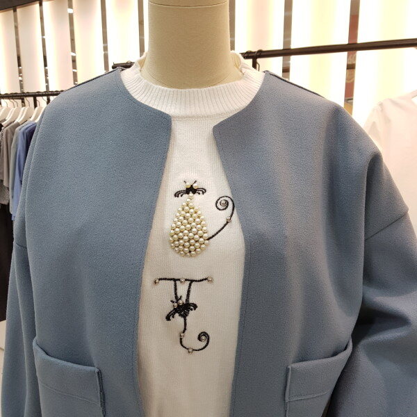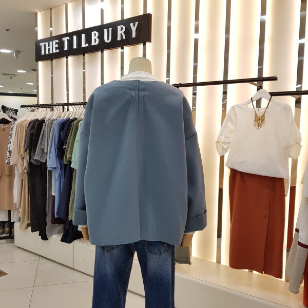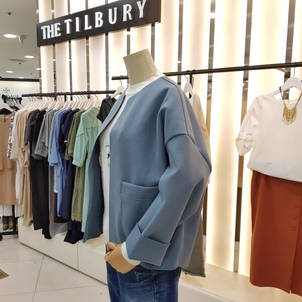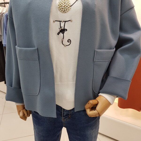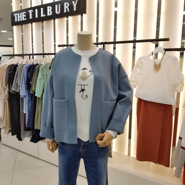 무심하게 걸치기 좋은 오픈 프론트 스타일의자켓입니다.포켓장식이 포인트가 되는제품이며 여밈 실루엣이 감각적입니다.