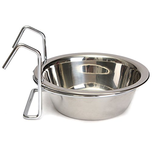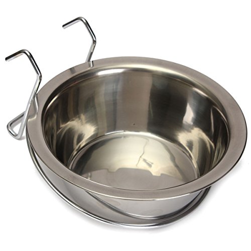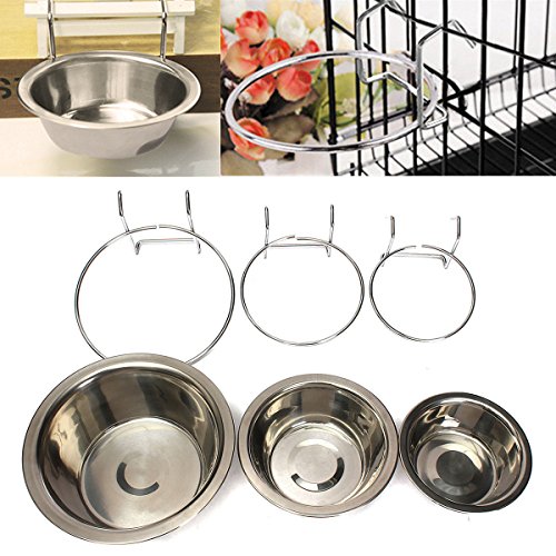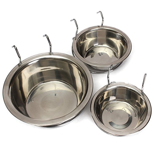 -. Binding : Misc. -. Brand : Yosoo -. Color : silver -. Feature : Size: S, M, L / Comes with a wire holder that can be easily attached to bird cages, dog crates, chain link fences etc / Easy to adjust and remove for cleaning / Smooth rolled edge; Dishwasher safe / Material: Stainless steel -. Label : Yosoo -. Manufacturer : Yosoo -. PackageQuantity : 1 -. ProductGroup : Pet Products -. ProductTypeName : PET_SUPPLIES -. Publisher : Yosoo -. Studio : Yosoo -. Title : Yosoo Stainless Steel Hook on Feeding Dog Bowl Pet Rabbit Bird Cat Dog Food Water Cage Cup Crate Cup with Clamp Holder