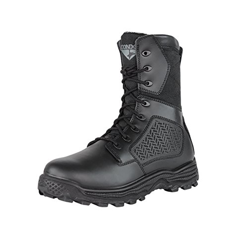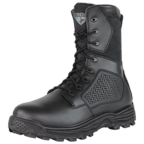 Studio : Condor Publisher : Condor Binding : Misc. Product Description The Condor 9" Murphy side-zip tactical boot is the ultimate package of durability and versatility. An outer knife pocket provides that extra piece of utility, and an inner side zipper gives the wearer the readiness to jump into action at a moment's notice. The sturdy polyurethane outsole will keep your feet balanced and stable, the light and cushioning polyurethane insole will keep your feet comfortable, and the waterproof inner membrane will keep your feet dry. A specially designed nylon fabric side panel will give an extra dose of breathability during harsh conditions. Features: * AM-TECH Direct Soling Technology: Outsole binds directly to the upper without the use of glue, creating an inseparable bond * Removable polyurethane (PU) insole provides extra comfort and reduced impact on your feet * YKK side zipper and elastic laces for easy access in and out of the boot * AQUASHIELD waterproof bootie membrane ensures dry and comfortable feet in wet weather conditions * 100% non-metallic eyelets, zipper, and fiber shank (Security Friendly) * Import Materials: * 100% Genuine Full Grain Cow Leather * 1800 Denier Coated Oxford Nylon Fabric * Knit Fabric Lining * Polyurethane (PU) Outsole * Polyurethane (PU) Insole 0