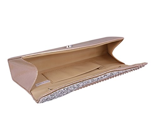 Enough Space to hold cash,credit card,and coins,lipstick,mirroe,it can be a clutch,cross-body bag and hangbag for wedding,prom,party,cocktail