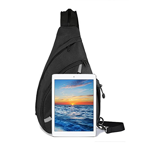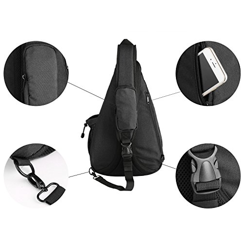-. Feature : Triangle style designed: Durable polyester canvas with quality hardware and reflective material strip / Multi-pockets: Two main pockets, a small zippered pocket and a side mesh pocket. Includes convenient front cell phone pocket which fits for 5.5 inch smart phone with headphone access and RFID blocking anti-theft pocket for valuables. / Seemly size: 18*12*5 inch, easy to organize your cellphone, tablet, bottle, wallet, keys, ID card, small snacks and other personal belongings. / Stylish design: Headphone cable hole; right or left cross-body strap; Comfortable back mesh padding.You can wear this sling bag over either shoulder comfortably, or in the front across the chest to deter thieves. / Multi-function:New Fashion Unbalance Backpack apply to school, camping, hiking, weekend Travel, street shopping and daily use. It also can be a great gift.