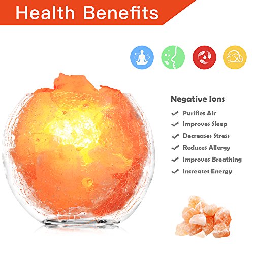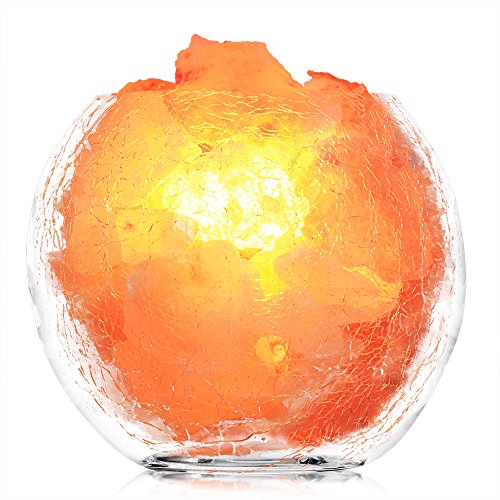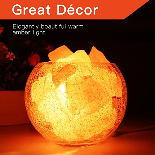 SPECIFICATIONS - The crackle glass bowl is 3.3 inches high with 4 inch diameter. Includes two 15W yellow light bulbs. Crystal salt chunks weighing approximately 14 ounce in total.