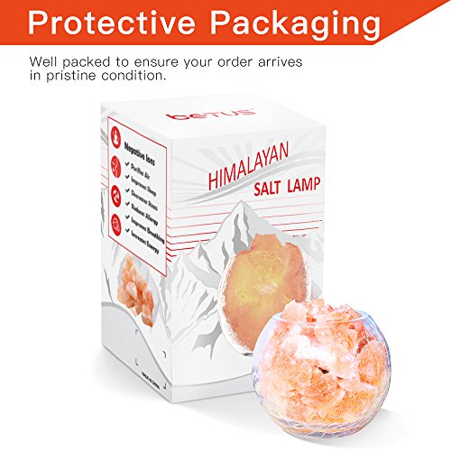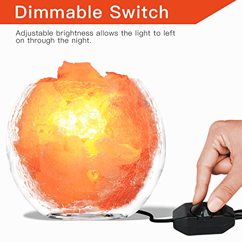 Betus [Natural Crystal] Himalayan Salt Glass Bowl Lamp - Hand Carved Salt Chunks with Dimmable Cord and 2 Light Bulbs - Crackle Glass Bowl