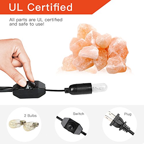 AUTHENTIC CRYSTAL SALT - Natural crystal salt chunks hand carved in Pakistan. CE certified and RoHS conformed cord and switch.