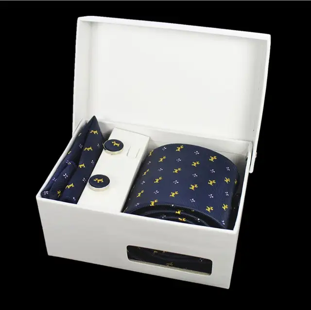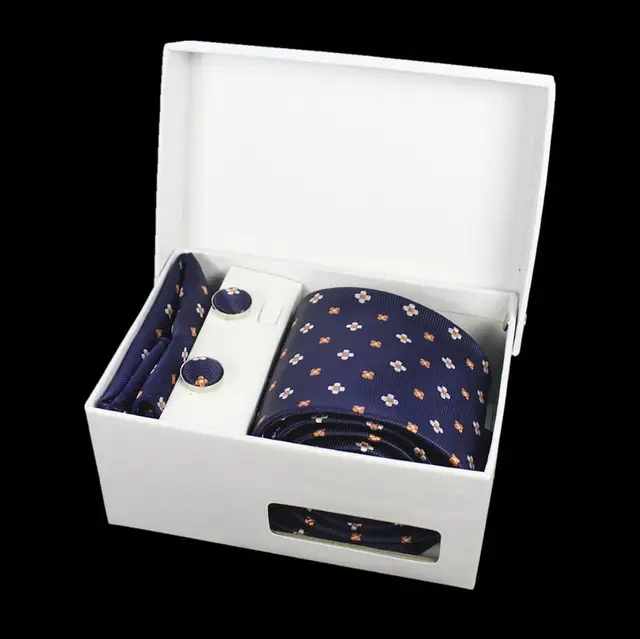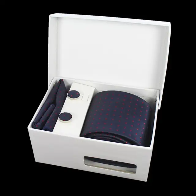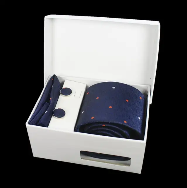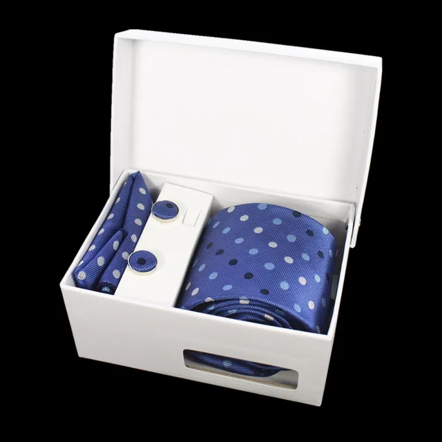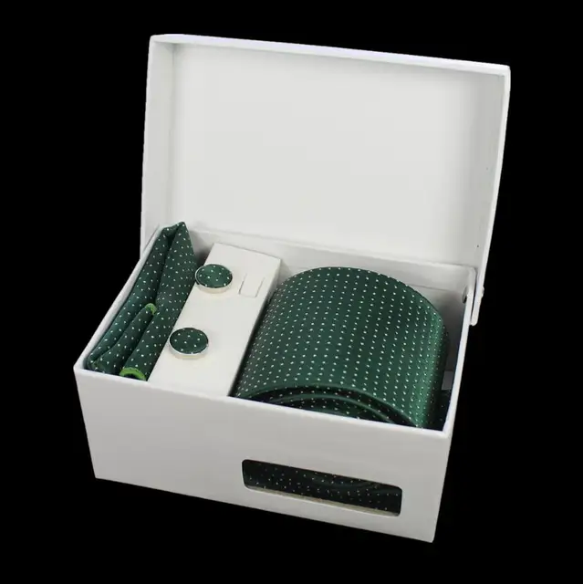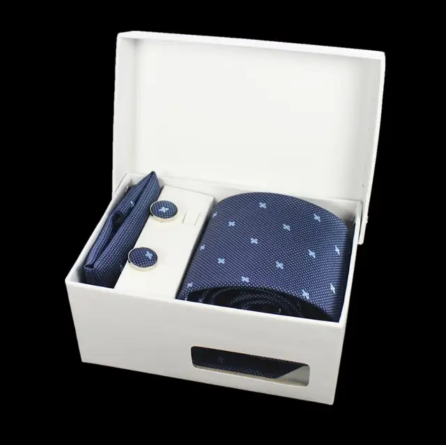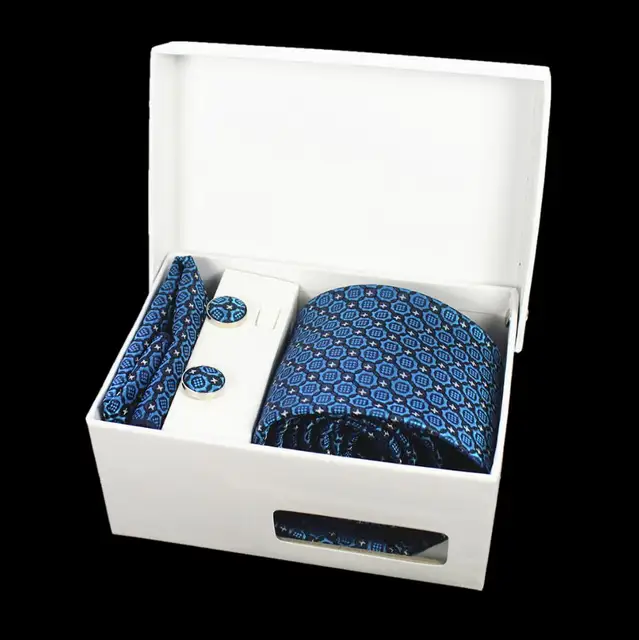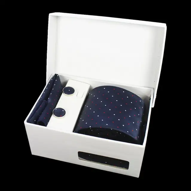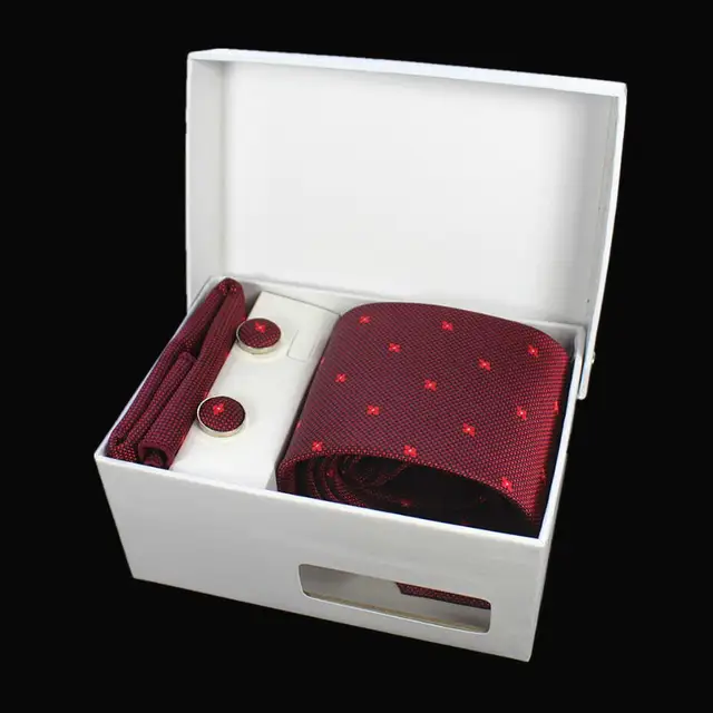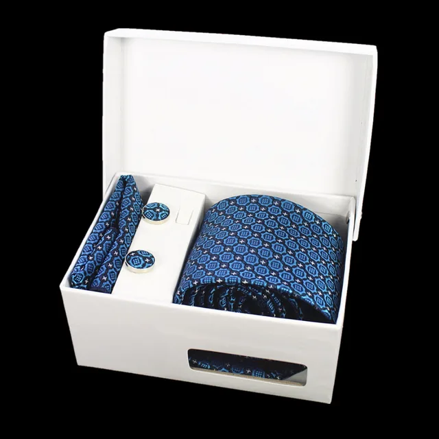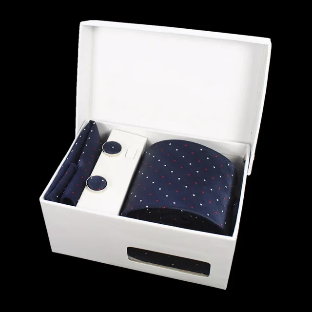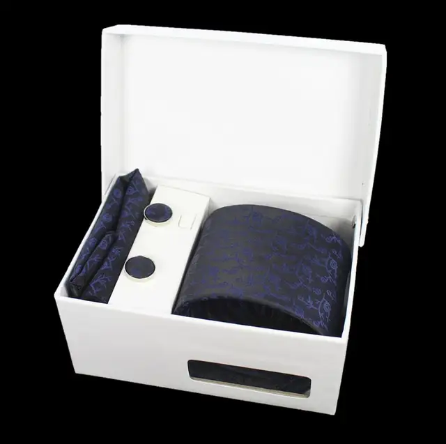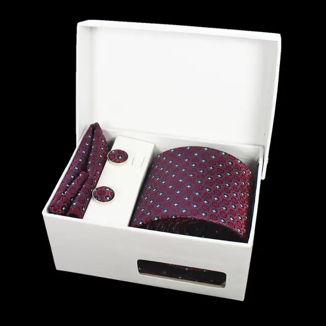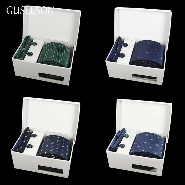 상품 내용 GUSLESON 넥타이 세트 손수건 커프스 선물 상자 자카드 짠 격자 무늬 넥타이 세트 남성 웨딩 파티 많이 액세서리