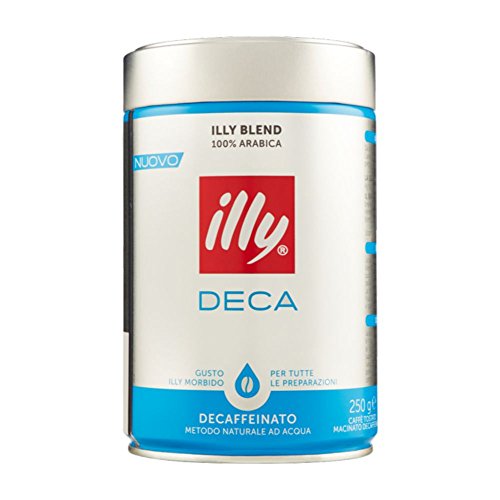 Illy decaffeinated ground espresso coffee, 8.8oz coffee can.