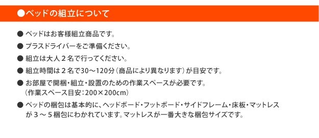 サイズ(cm):[ベッド]幅141x奥行209x高さ88(床板高さ30)cm・約49kg、[マットレス]幅140x奥行195x高さ16cm・約23kg