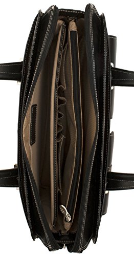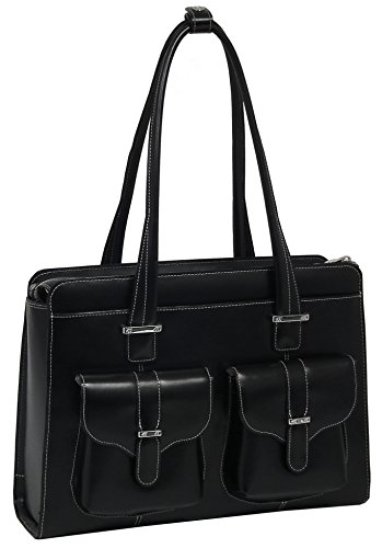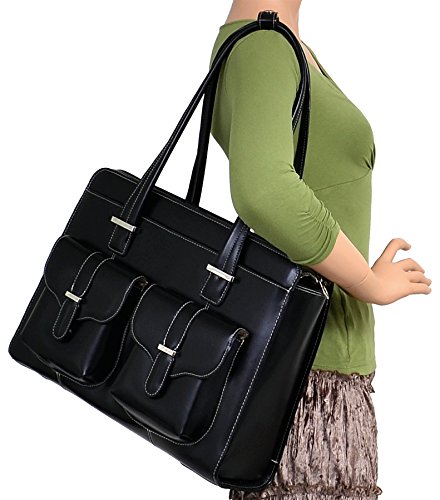 -. Binding : Electronics -. Brand : McKleinUSA -. Color : Black -. EAN : 0758576909233 -. Feature : Made of high quality stylish genuine Italian leather / Main compartment with zippered closure and fully lined interior exclusively designed with a center zippered divider, padded laptop pocket that fits most laptops with up to 15.6" screen and a complete organizer that holds business cards, pens, cell-phones...etc / Two small front pockets with magnetic snaps. Front and back slide-in pocket for files / Back strap designed to attach your beautiful tote to a rolling lage / Product dimensions: 17"W x 12"H x 4.5"D. Laptop compartment dimensions: 15"W x 10"H x 2"D -. ProductGroup : PC Accessory -. ProductTypeName : CARRYING_CASE_OR_BAG -. Title : McKlein USA Alexis Genuine Leather Women's Briefcase - 15.6" Laptop Business Tote Black -. UPC : 758576909233