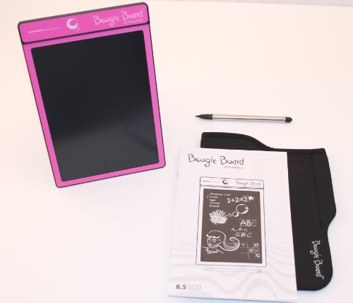 -. Feature : Set includes: Neoprene Protective Sleeve, Stylus & Pink Boogie Board! / Erase your image with the touch of a button - and a friendly flash from the liquid crystal display - COOL! / Sealed 3V watch battery never needs replacing. / The Boogie Board tablet is an ultra 1/8" thin and is easy to take with you in a purse, scheduler, briefcase or backpack. / The case and LCD are made from durable plastic materials. Safe for school use and all around the house, office and car.