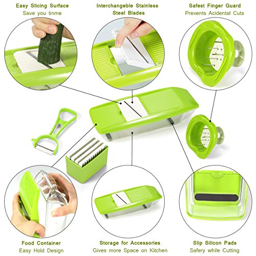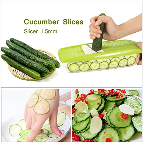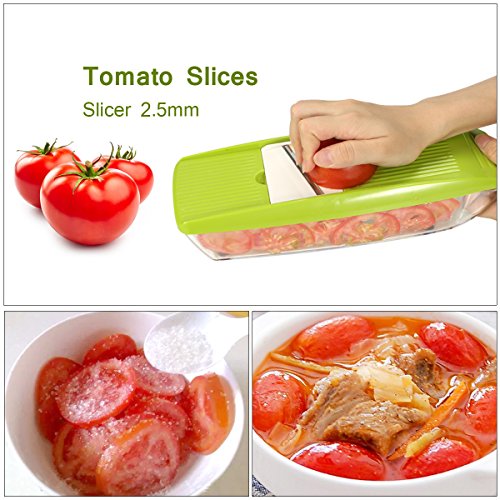 Hight Quality: This slicer is made of food grade 304 stainless steel blades and plastic material and 5 stainless steel blades are guaranteed not to lose sharpness or rust over time.