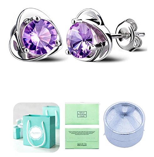 -. Title : 【ELEEJE】 人気 の 可愛い ハート 型 シルバー ダイヤモンド ピアス レディース 用 (収納BOX、お手入れ用クロス、プレゼント 用袋付き セット ) (ピアス直径約9mm)purple (シルバー)