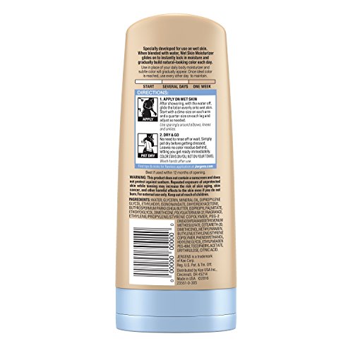 ReleaseDate : 2016-12-03 Studio : Jergens Publisher : Jergens Binding : Health and Beauty Product Description Specially developed for use on wet skin. When blended with water, Jergens Natural Glow Wet Skin Moisturizer glides on to instantly lock in moisture and gradually build natural-looking color each day. Just apply on wet skin and pat dry for streak-free color. COLOR STAYS ON YOU, NOT ON YOUR TOWEL. 0
